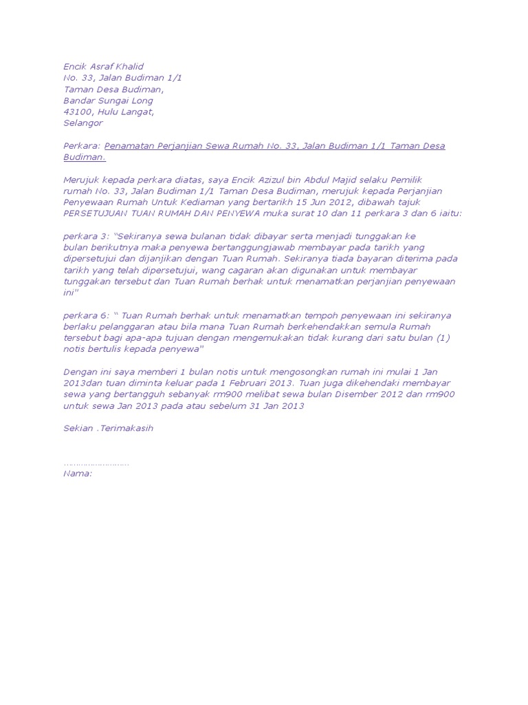 Comtoh Surat Perinagtan Untuk Sewa Rumah Yang Tertunggak